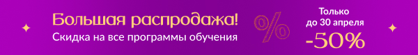 Акция -50% продлится до 30 Апреля. Во время акции вы можете успеть забронировать обучение по сниженной стоимости.